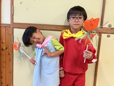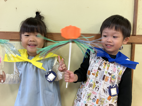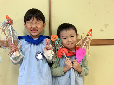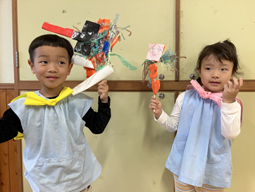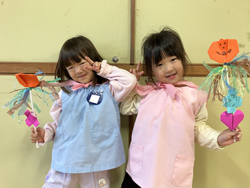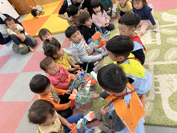 すみれ組さんからは、ハロウィン制作をプレゼントしました。