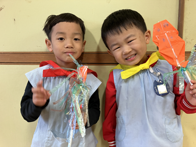 いたずらされては大変と、こすもす組のお友達からキャンディーをプレゼントして貰いました。
