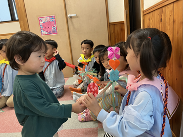こすもす組の先生からまた一緒に遊ぼうね。と言われ一緒に遊ぶ日を楽しみにしている子ども達です。