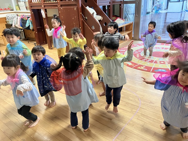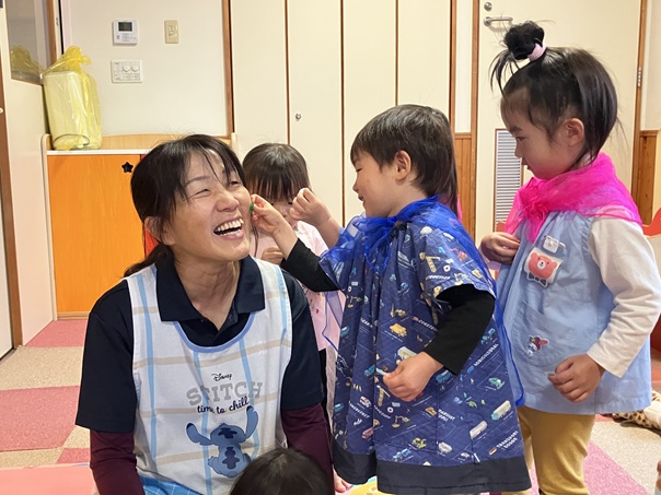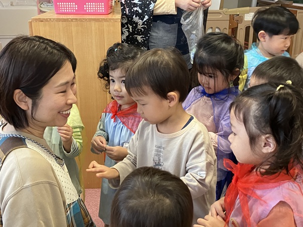 ちゅうりっぷ組さんも、たんぽぽ組にお菓子を探しに来てくれました。いろいろな行事を通して年齢に関係なく交流をし、みんなが笑顔で楽しむことができるようにしたいと思います。