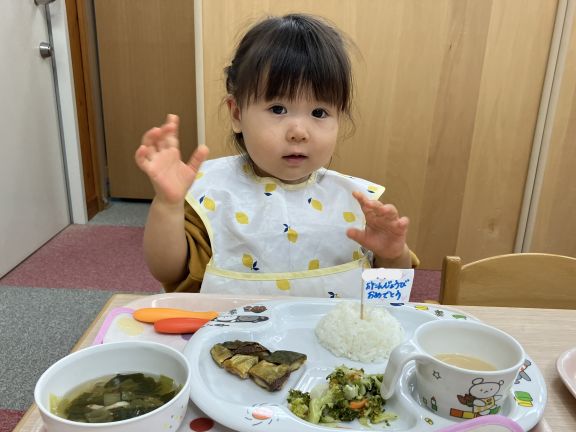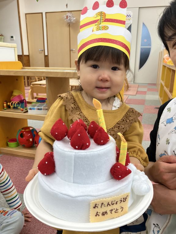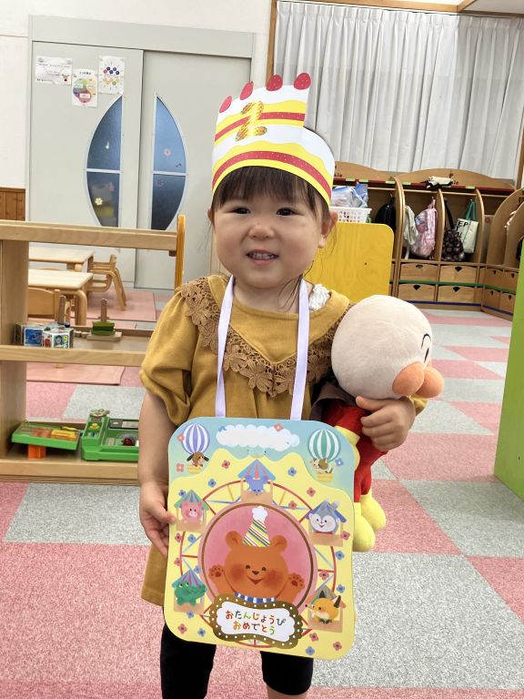 お誕生会では、お友達や保育士にたくさん「おめでとう」と言われ、笑顔いっぱいになっていました💗