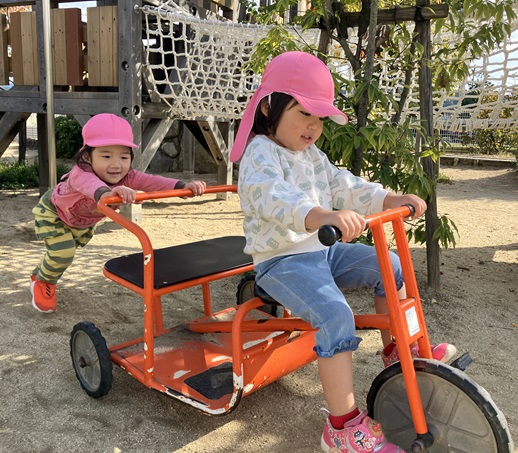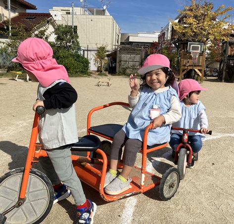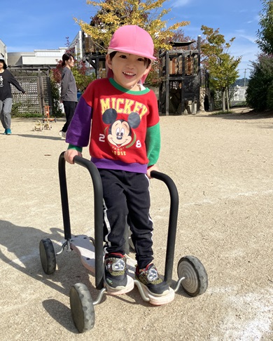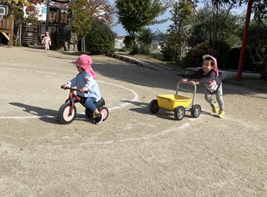 出来ることが増えた分、春に比べると活発に遊ぶようになってきました。「やってみたい」という気持ちを大切にし傍で見守りながら、安全に楽しく遊べるようにしていこうと思います。