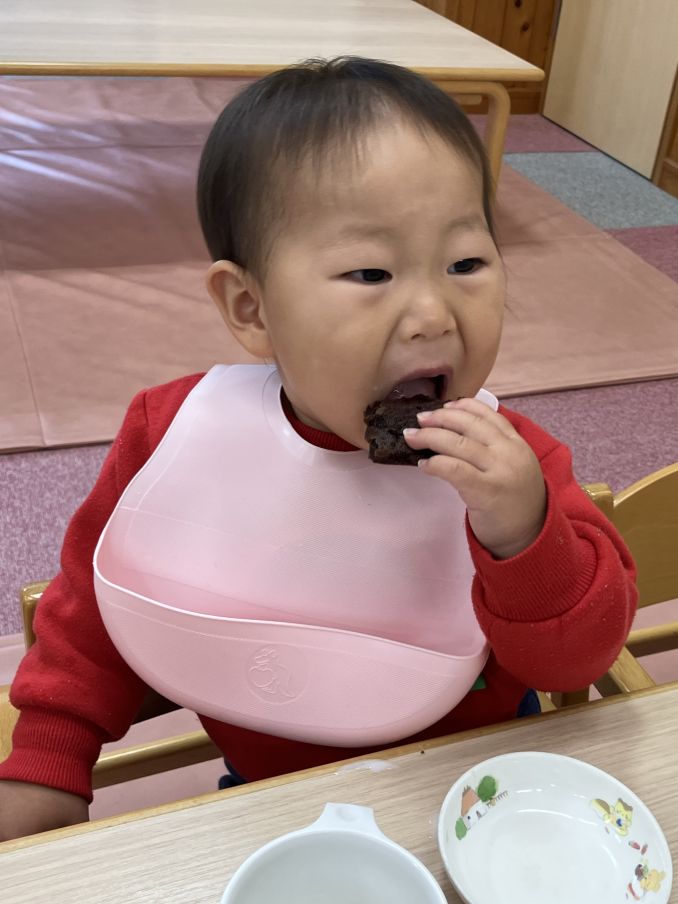 白い豆腐が茶色に?不思議そうにしていましたが…疑問よりも美味しさが勝り、ブラウニーを頬張っていました。