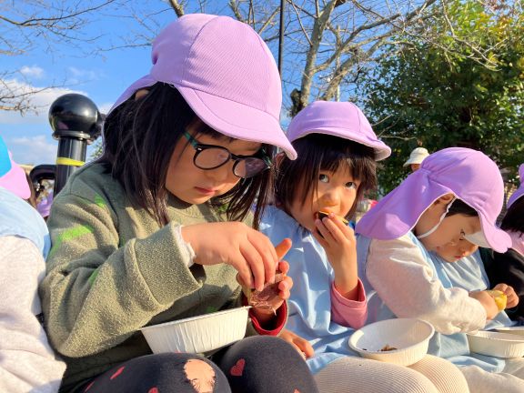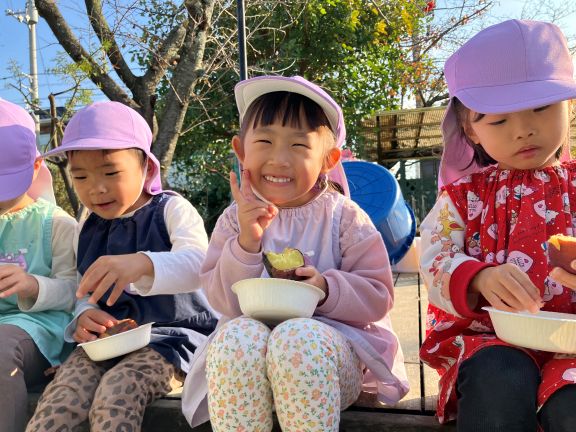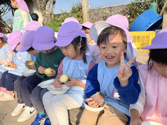 みんな上手に皮を剥いて、ホクホクのやきいもをペロリ😋😋