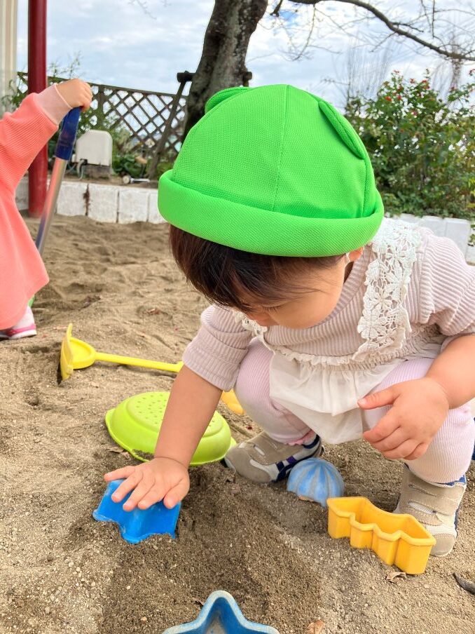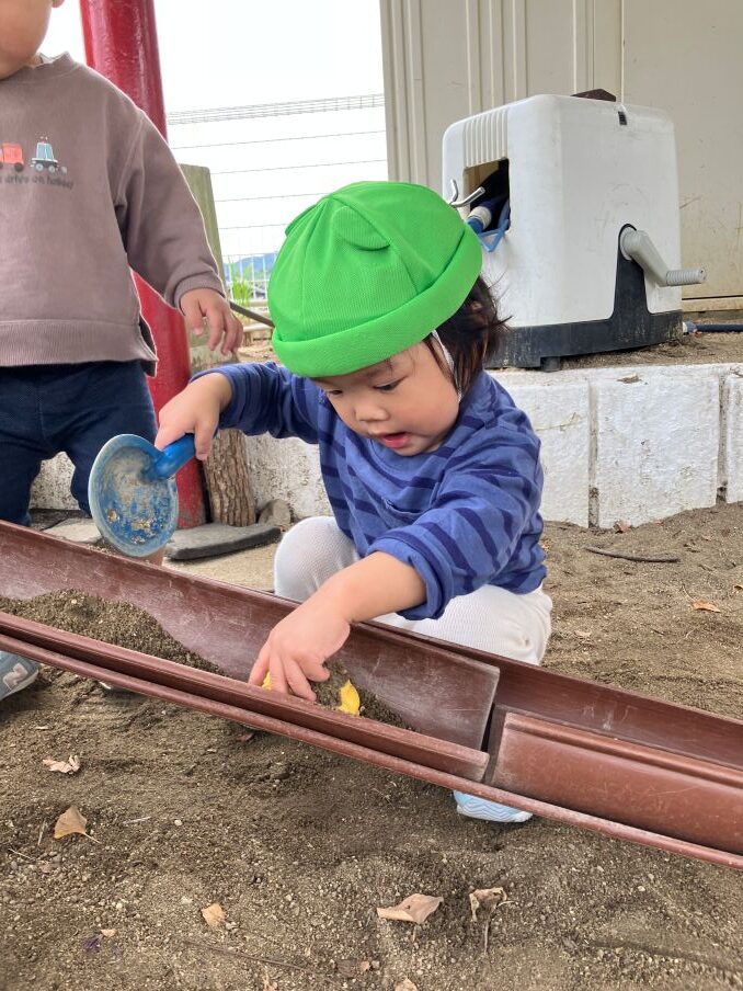 お天気の良い日には、戸外でたくさん体を動かしたり、じっくりと砂遊びを楽しんだりしようと思います。