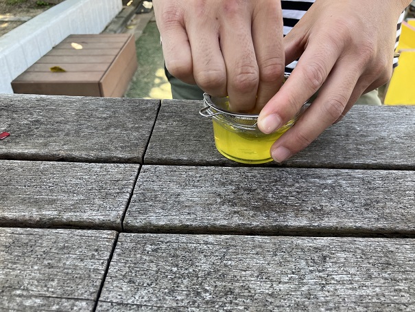 おろし器をつかって石鹸を削ります。