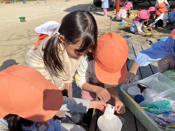 子どもたちのアイディアから遊びが広がるのが1番いいですが、保育士のきっかけ作りもかかせません。