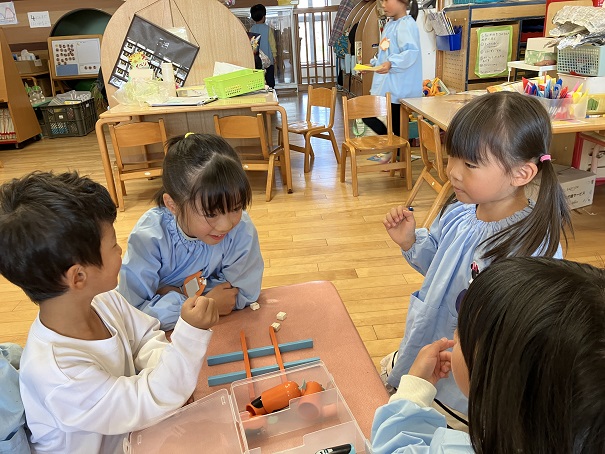 ゴブレットゴブラーズをしました。普段からいろいろなボードゲームをしている年長児ですが・・・
