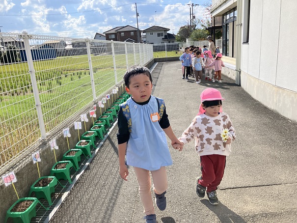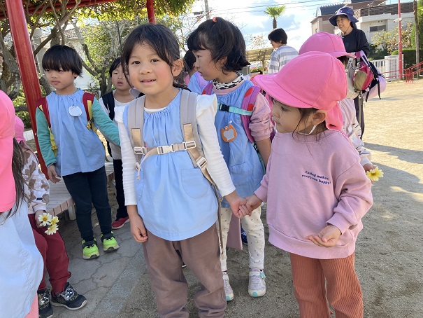 「お兄ちゃん、おねえちゃんが手をつないでくれるよ」と言われると、慌てて走ってくる2歳児の子どもたち。