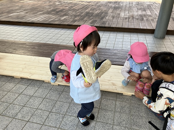 この日は、2歳児の子どもたちが部屋に入るときに合わせて、一緒に入ることにしました。