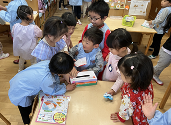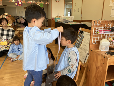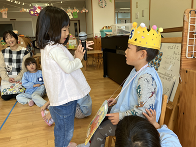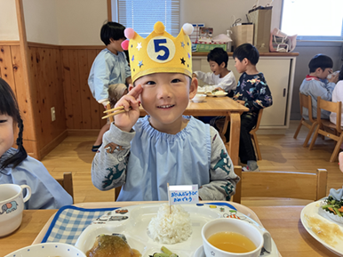 園内放送が流れるとお友達に、「おめでとう。」とお祝いされ嬉しそうでした。