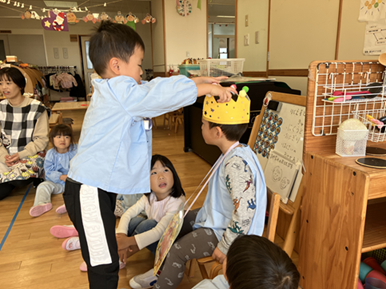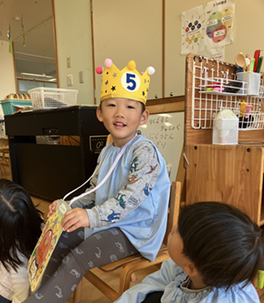 お誕生日カードと冠をお友達からプレゼントして貰い、嬉しそうでした。