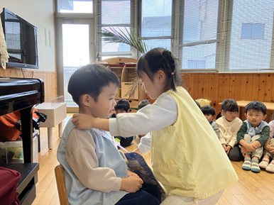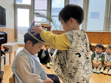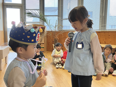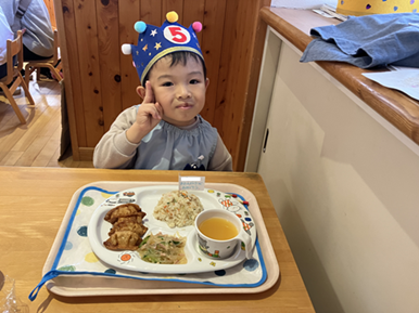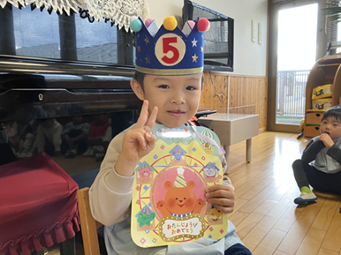 園内放送が流れるとお友達に、「おめでとう。」とお祝いされ嬉しそうでした。