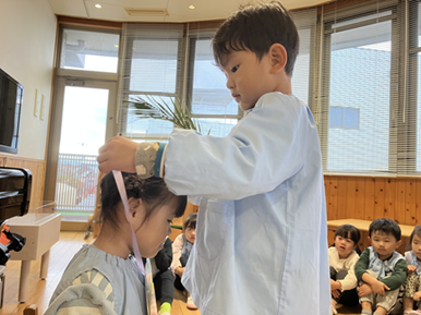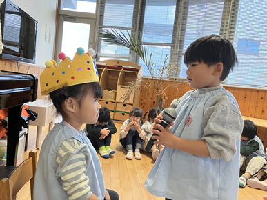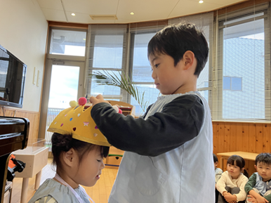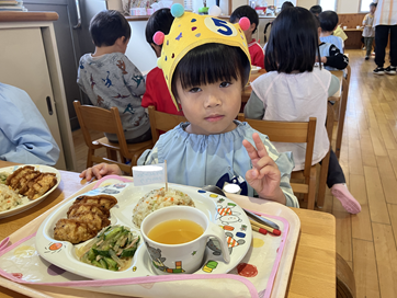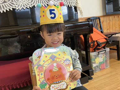 園内放送が流れるとお友達に、「おめでとう。」とお祝いされ嬉しそうでした。