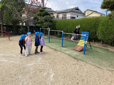 お友達を誘って「だるまさんが転んだ。」を楽しんでいます。