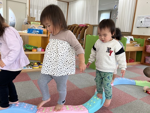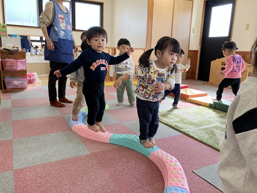 子育てさんからバランスボードを借りてきました。初めて見るものにみんな興味津々✨