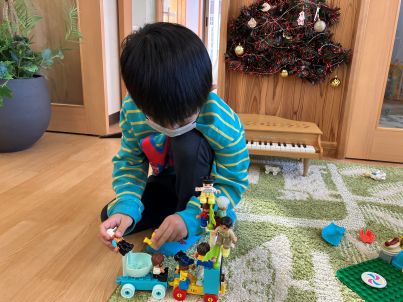 今日来てくれたお友だちは、ブロックで集中して遊んでいました😆とても素敵な列車が出来ていたので写真を撮らせてもらいました📸