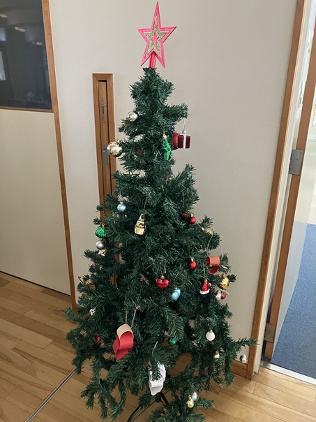 一人一人の思いが詰まった素敵なクリスマスツリーになりました。保育園にもサンタさん来てくれるかな?