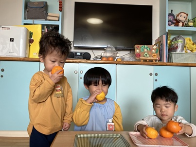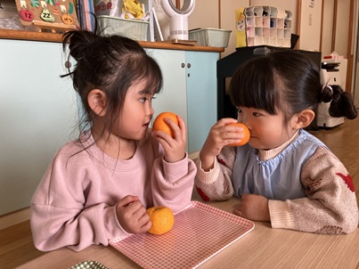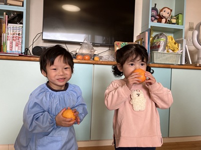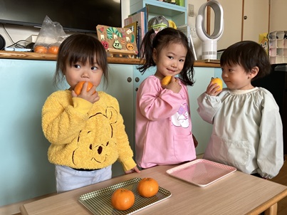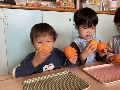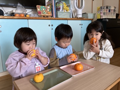 「こっち(みかん)のほうがいいにおい。」「こっち(ゆず)がすき。」などそれぞれが好みの匂いを見つけていました。