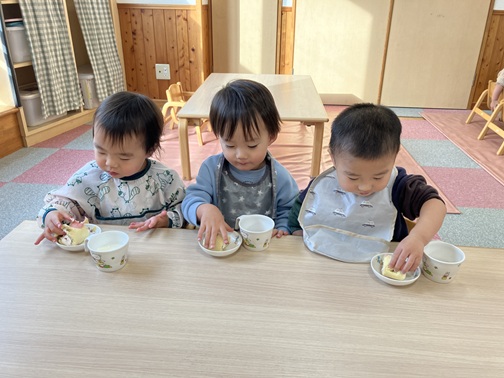 「クリスマス」にちなんだおやつ。みんなで美味しくいただきました😋