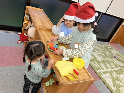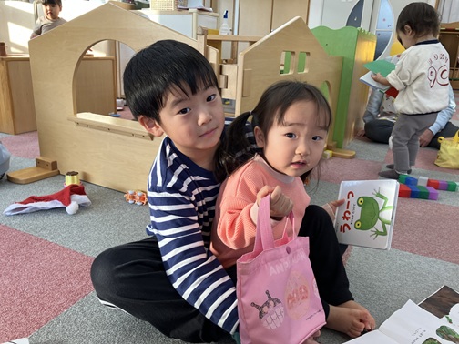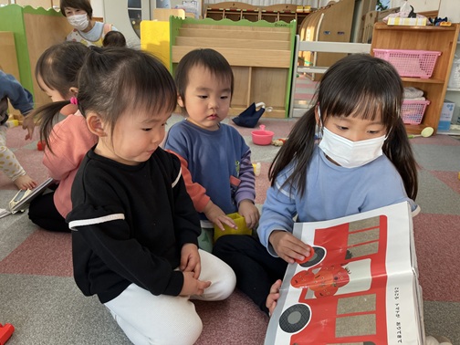 久しぶりにひまわり組のお兄ちゃん、お姉ちゃんが遊びに来てくれました🎵絵本を読んでくれたり、一緒にごっこ遊びをしたり。お兄ちゃん、お姉ちゃんのしていることを興味津々に見ている子もいました。