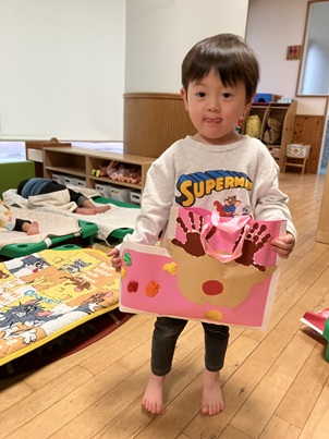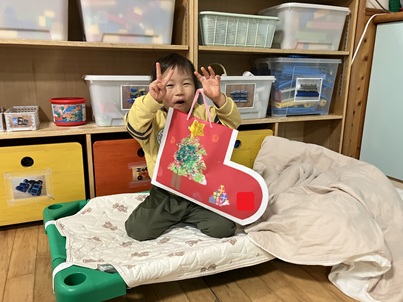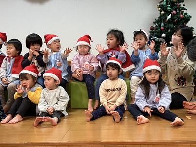 少し前にクリスマス会のことを話し、“他のクラスのお友達がみんなの手遊びや歌を楽しみにしているよ”とお部屋で取り組んできました。