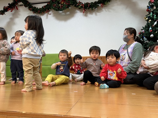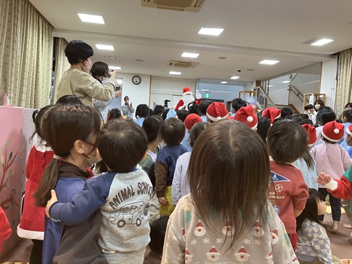 サンタさんにも「上手だったよ」と褒めてもらい、お兄ちゃん、お姉ちゃん、先生たちも笑顔いっぱい見てくれました😄