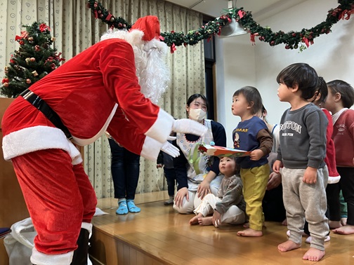 サンタさんの登場!!みんな声も出ずただ見つめていました。