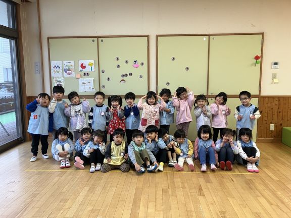 久しぶりにみんな元気に登園したので、集合写真を撮りました。