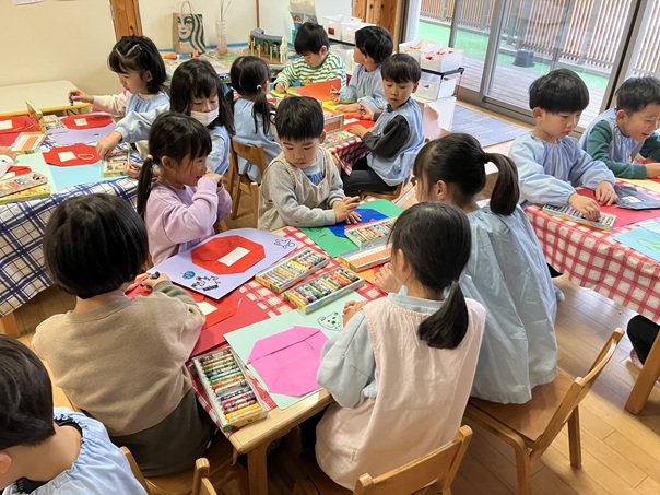 折り紙でだるま作りをしました。