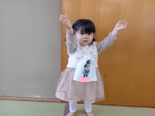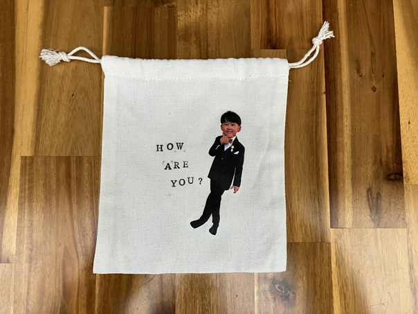 巾着袋と一緒に写真撮影です😆