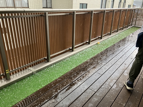少し大きな氷の塊に、部屋から出ることはできませんでした。保育士がとった氷を観察していました。