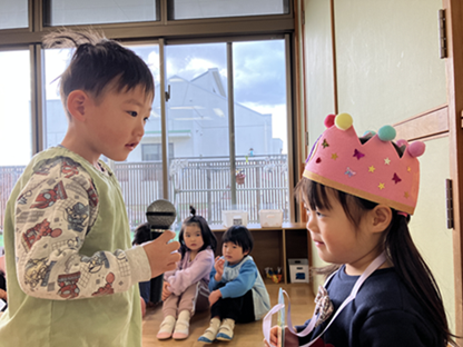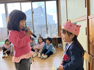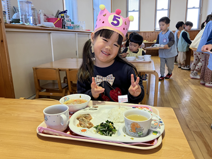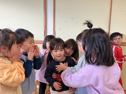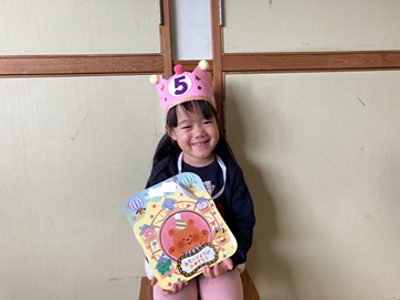 園内放送が流れるとお友達が集まり、「Rちゃん、おめでとう。」とお祝いされ嬉しそうでした。