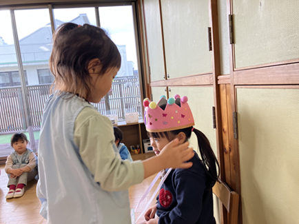 お友達からお誕生日カードと冠をプレゼントして貰い、嬉しそうでした。