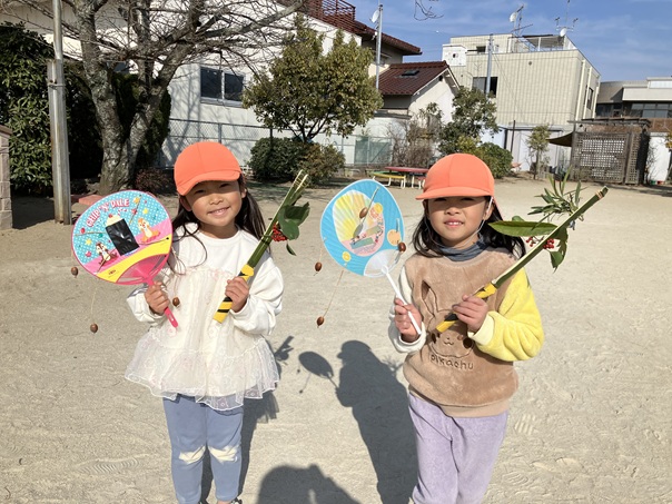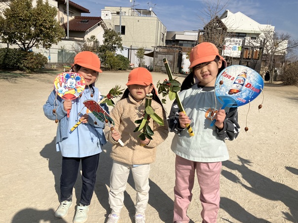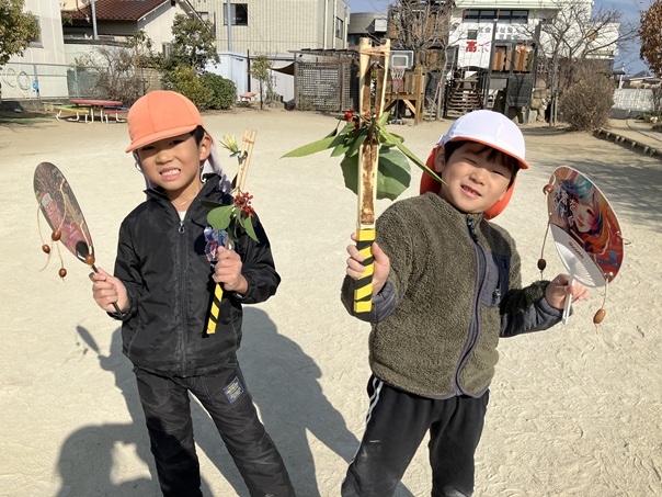 節分が近いということで、おにぐいとでんでん太鼓を作りました。