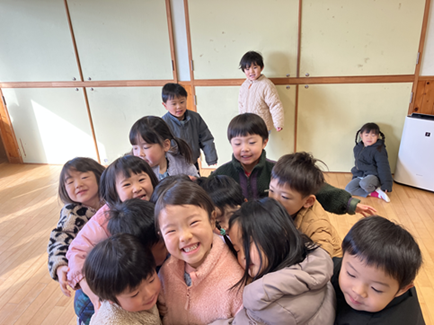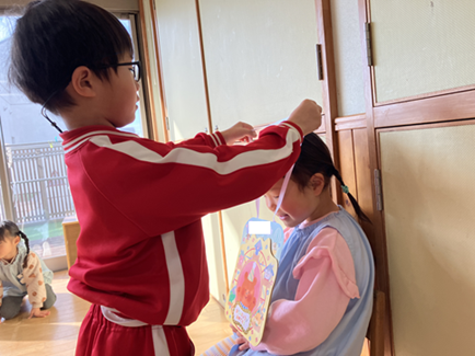 園内放送が流れるとお友達が集まり、「Kちゃん、おめでとう。」とお祝いされ嬉しそうでした。