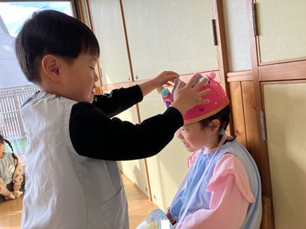 お友達からお誕生日カードと冠をプレゼントして貰い、嬉しそうでした。