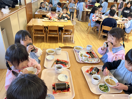 給食は恵方巻を食べました。