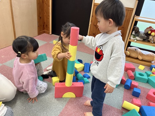 1人で集中する時もあれば、友達と協力して何かを作ったり積み上げたり。毎日楽しんでいます☺