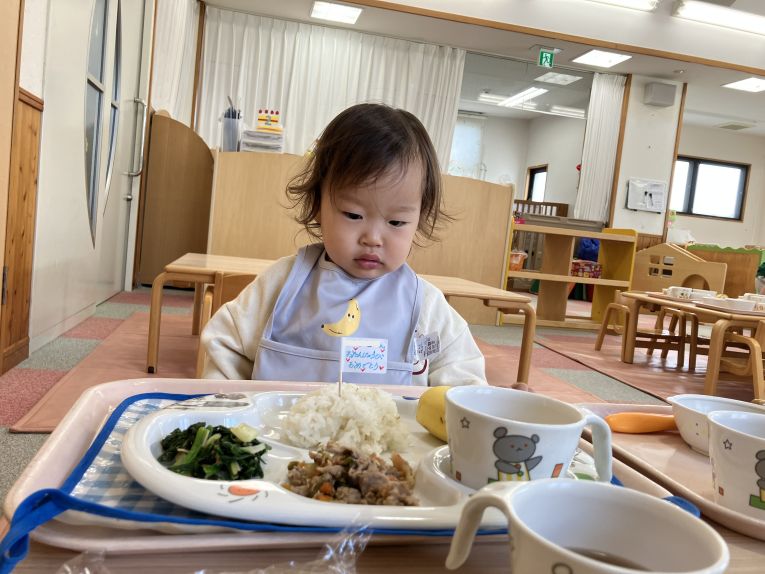 今日の給食はお誕生日のスペシャルプレートです!とても嬉しそうに頬張っていました。