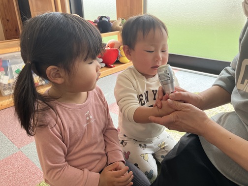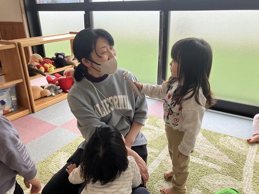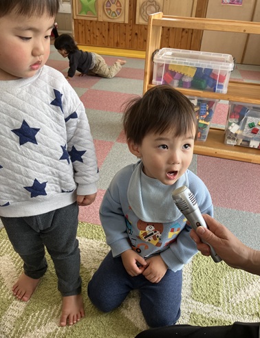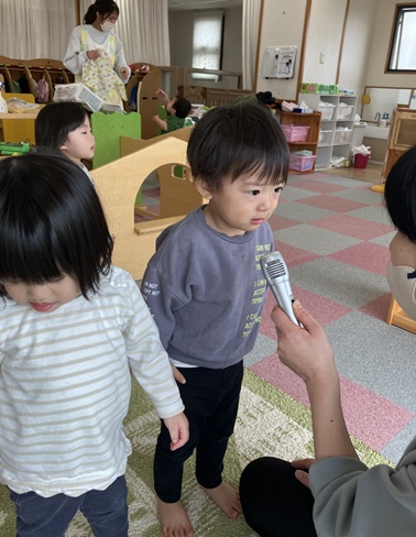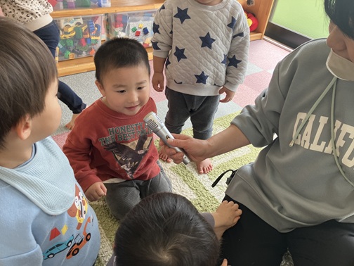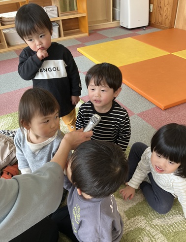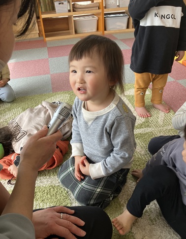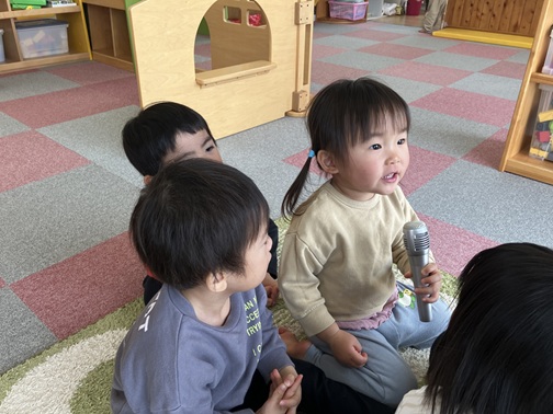 一生懸命考えて質問に答える子、まだ違うことを言う子。返事は様々ですが、みんな楽しんでいました🎵