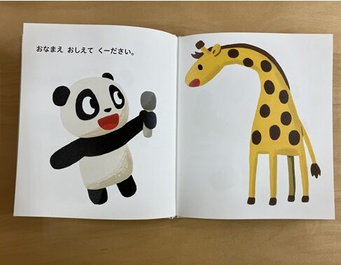 「おなまえ おしえてくださーい」と言うと、描かれている動物の名前を大きな声で言っています