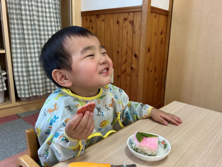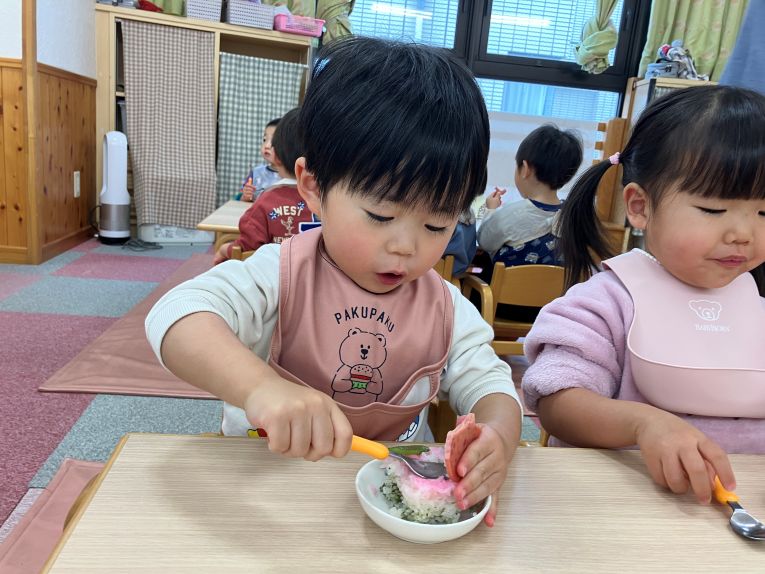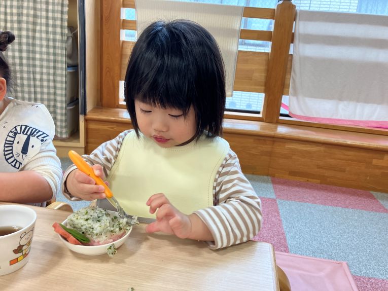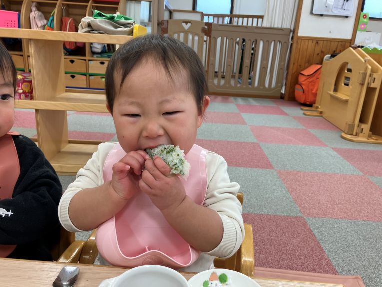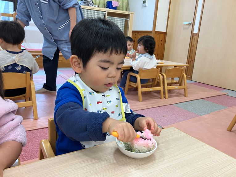 どの子も大きな口を開けて美味しそうにぱくりっ!!「おいし~」と保育士に伝えていました。