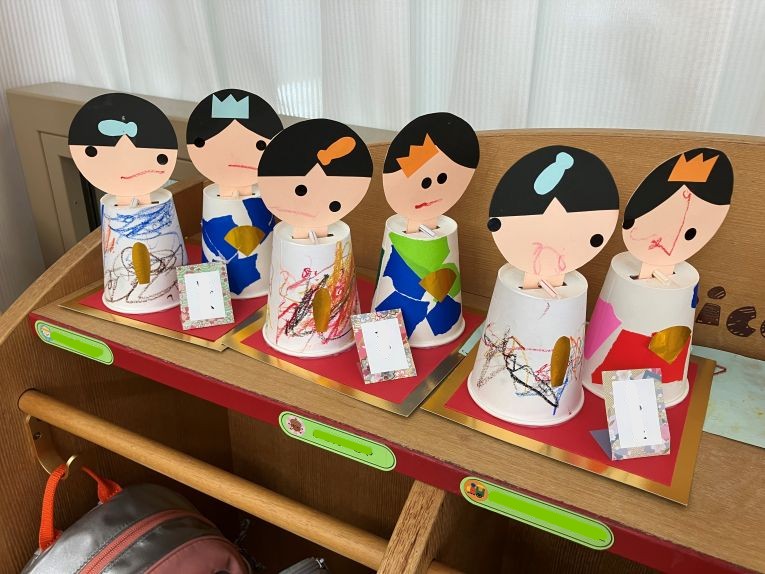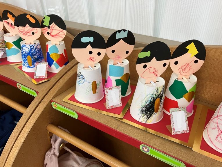 ひなまつりの制作では、子ども達一人一人が個性あふれるかわいらしいお雛様とお内裏様を作りました!