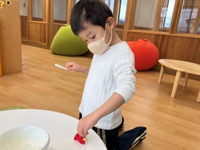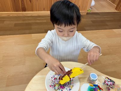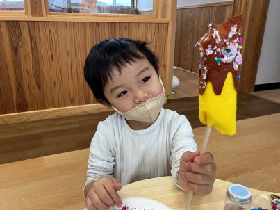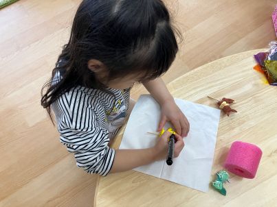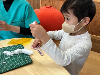 看護師と一緒に、色んなアイディアを出しながら制作あそびを楽しんでいました🎶