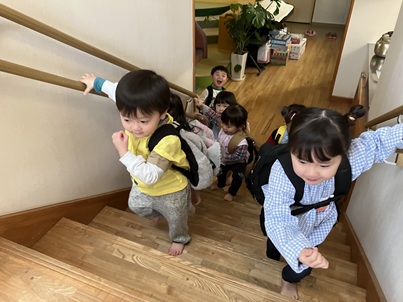 今日は、2階のクラスはどんなところかな?とリュックを背負って探検に出かけました。