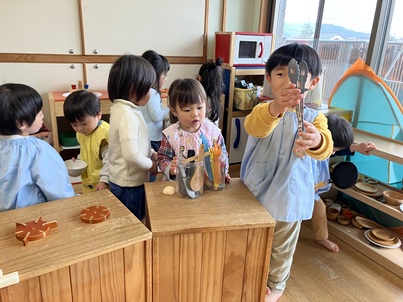 たんぽぽ組の子ども達は、4月から2階のちゅうりっぷ組🌷の大きいクラスのお友達になります。