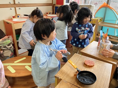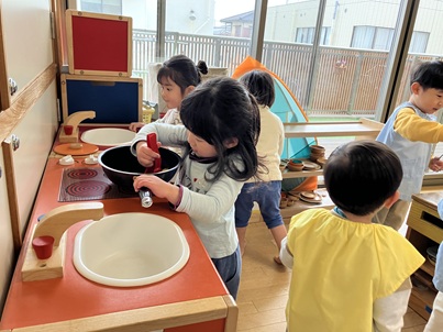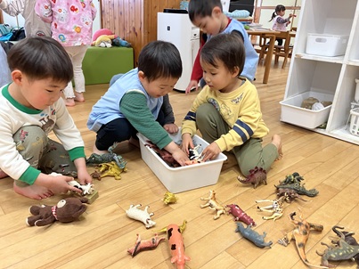 2階のクラスには、たんぽぽ組にはない玩具がたくさんあり、子ども達は目をキラキラ👀✨させて、遊び始めていました。