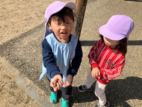 「まだどんぐり落ちてたよ」と沢山のどんぐりを拾っているお友だちもいました。
