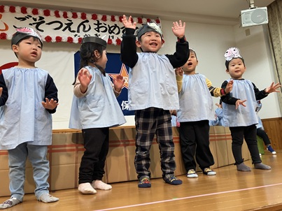 4月からは、大きいクラスのお友達の仲間入り。これからもたくさんの楽しいことを見つけて、いろいろなことにチャレンジしていってほしいと思います。